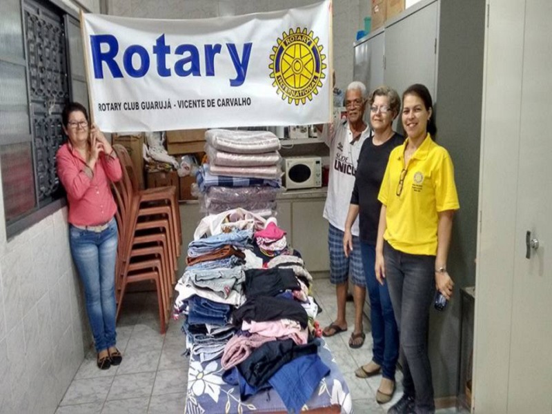 Na posse do casal presidente Luis Henrique e Magali Negrão, foi arrecadado agasalhos dos rotarianos convidados para promoção da campanha do agasalho humanitário em prol da congregação dos Vicentinos na Capela dos Passos em Vicente de Carvalho.
