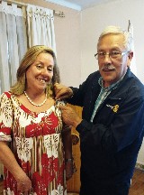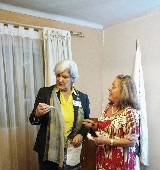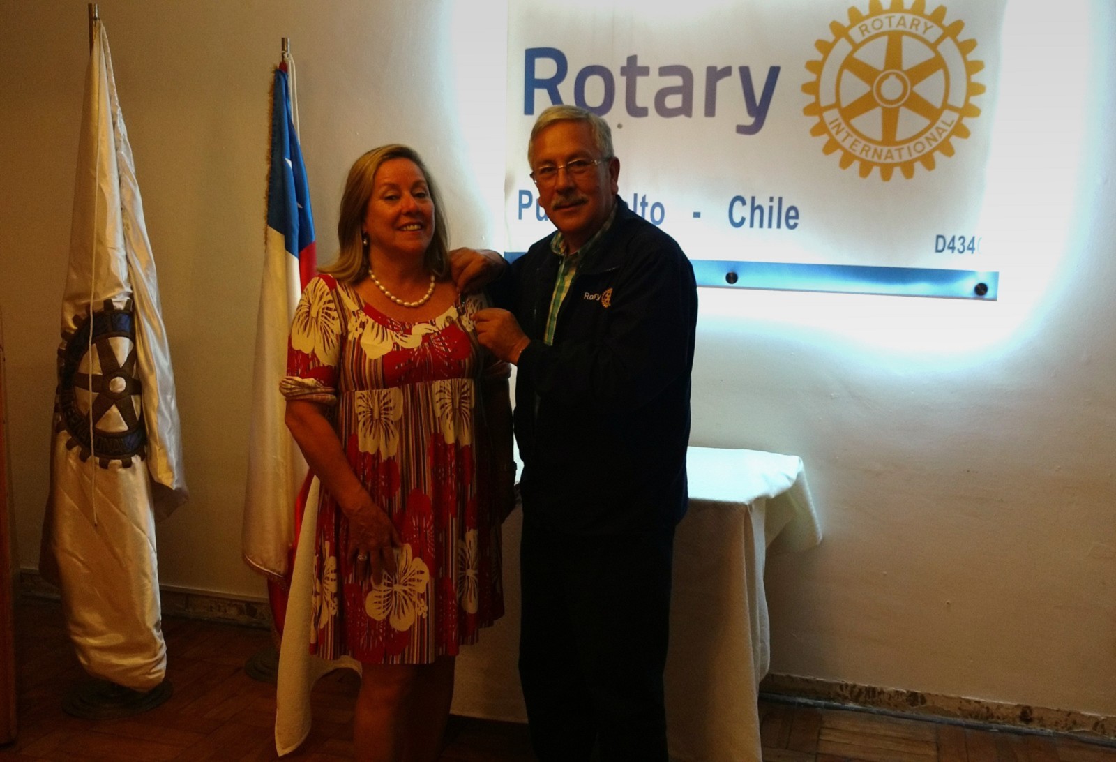 Visitando Rotary Club de Puente Alto, Distrito 4340 Santiago do Chile, em Aniversario de 80 anos do Club e Visita da Governadora Berta Rückert. Quem recebe de mãos da Presidente Veronica Ibarra Flamula do Club alem do nosso delicioso Cafe do Rotary.