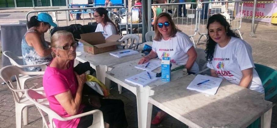Neste dia, as mulheres que foram atendida no Mutirão da Saúde, foram presenteadas com uma Rosa e receberam folheto: