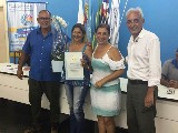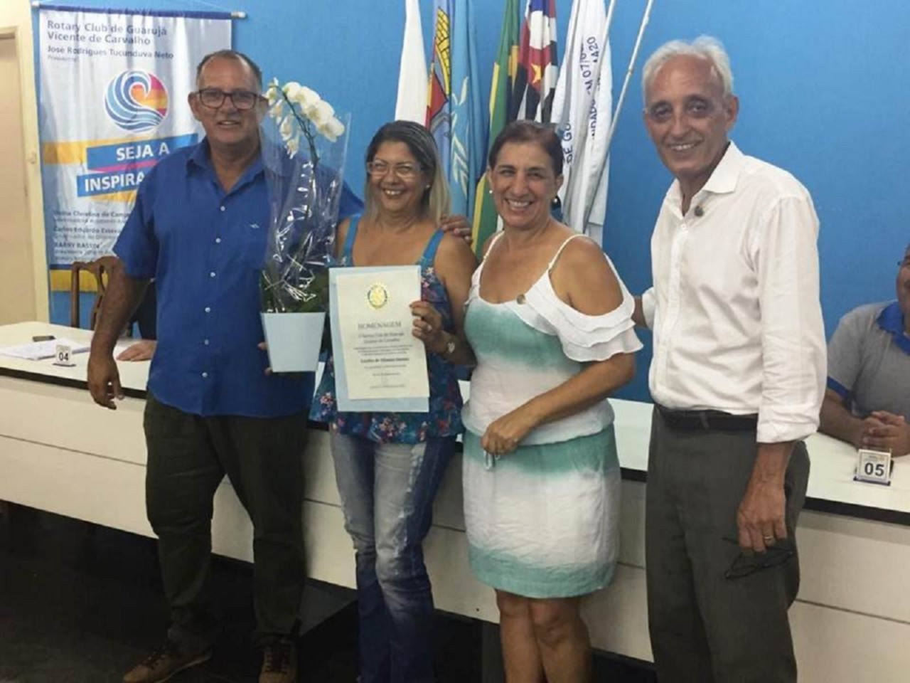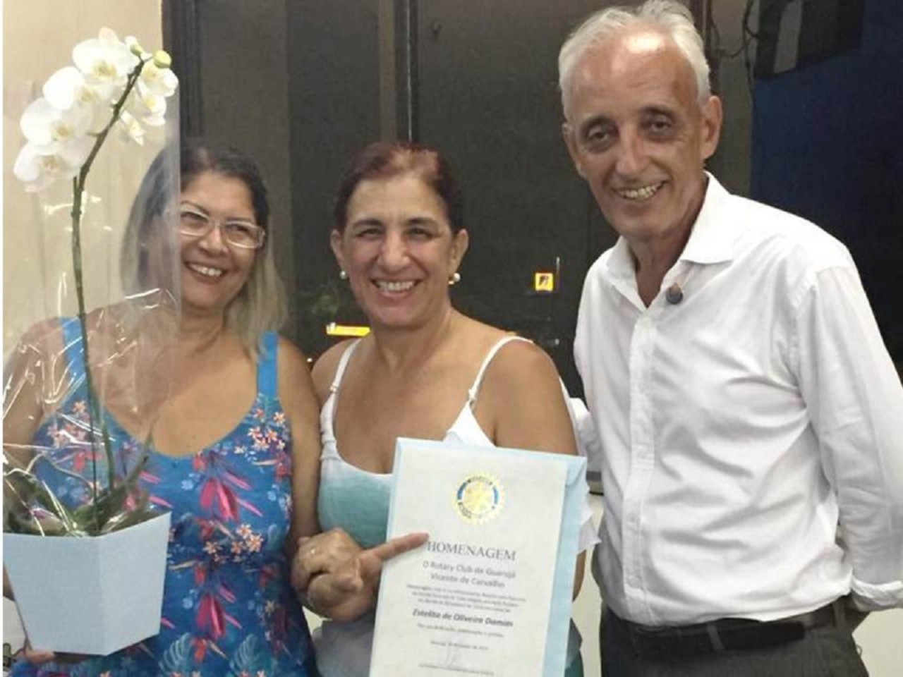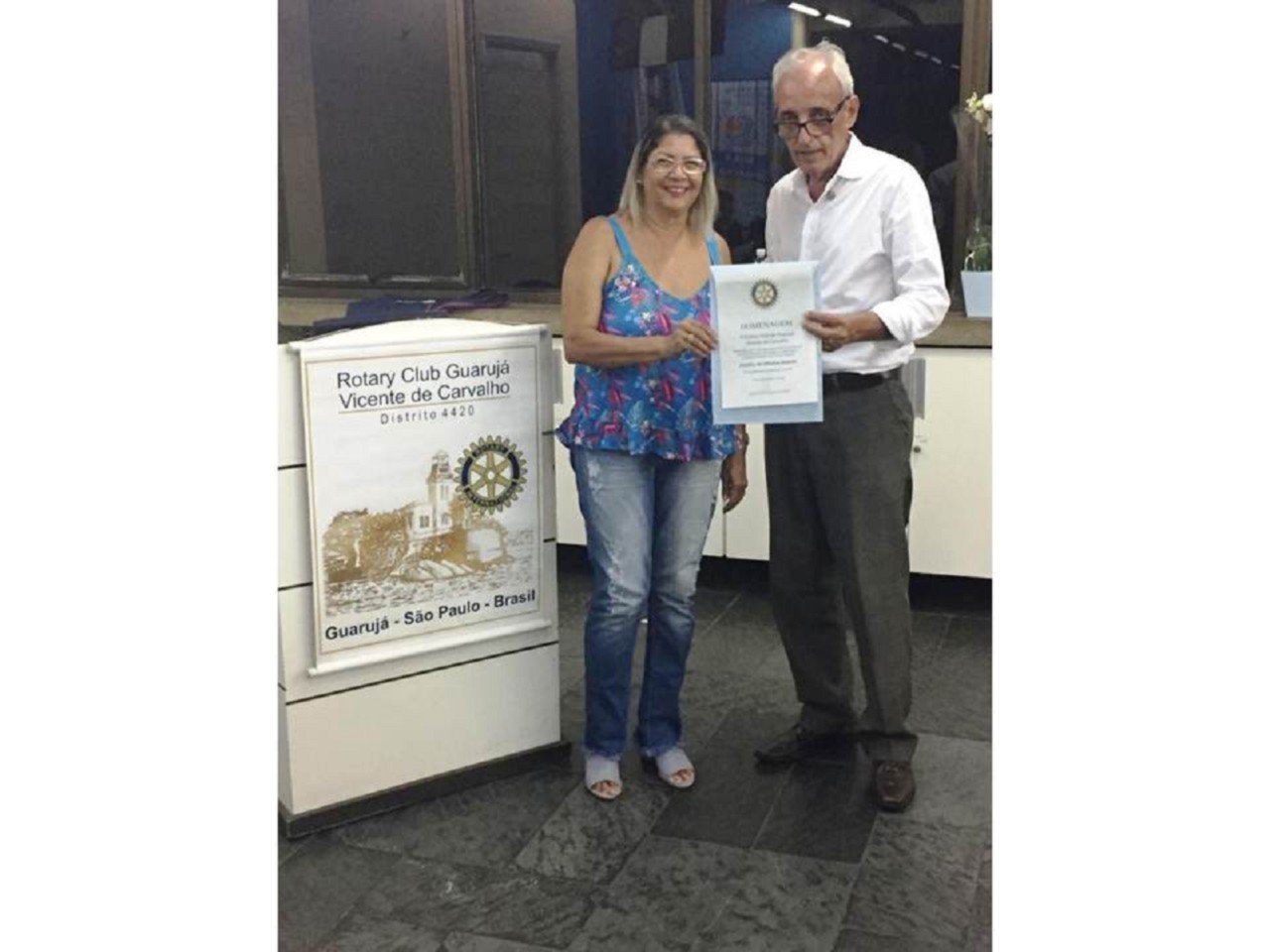 Rotary Club Guarujá Vicente de Carvalho Homenagem a Stelita de Oliveira Damim, proprietária da Escola Guarujá de Enfermagem, pela relevante contribuição a realização do evento do teste de hepatite. E