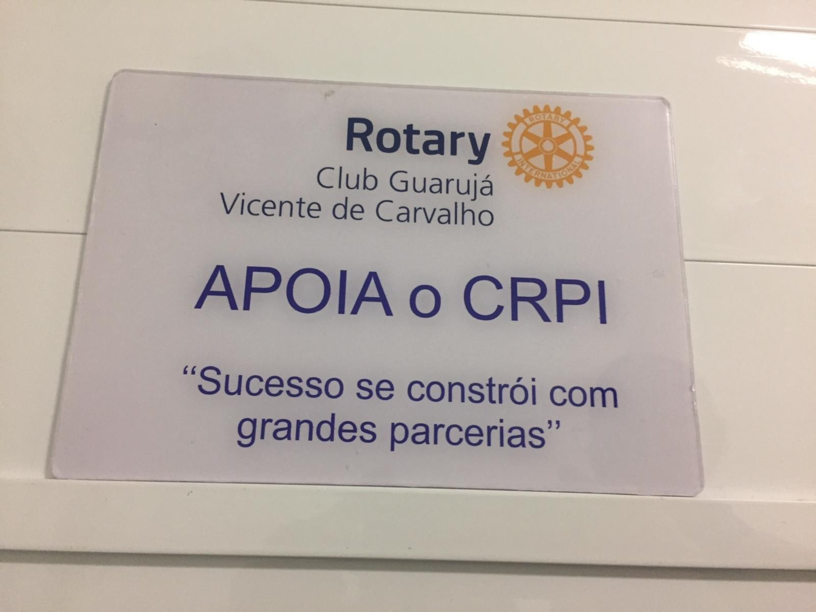 Com data 11 de Março de 2019 Governador do Distrito 4420 Carlos Eduardo Estevam Torci e Sonia Mara, acompanhados do Presidente do RC de Guarujá Vicente de Carvalho visitaram o Centro de Reabilitação de Paralisia Infantil (CRPI) onde foi inaugurada a sala de atendimento infantil, em companhia do seu Diretor Reginaldo Gonçalves Pacheco.